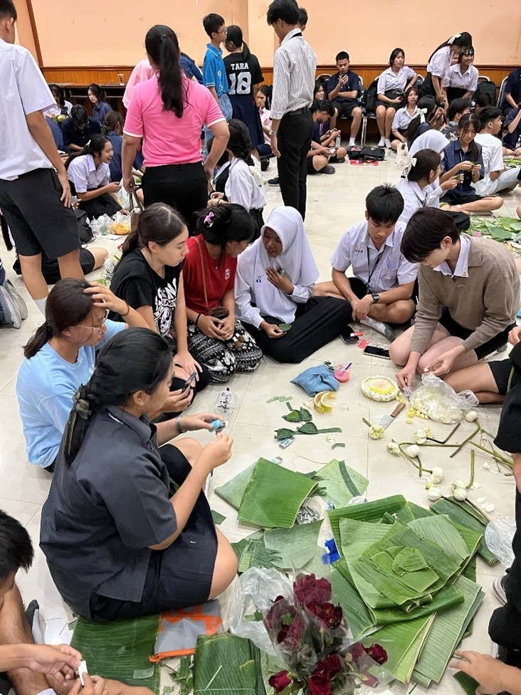 Students preparing banana trunks for the Loy Krathong festival in Thailand